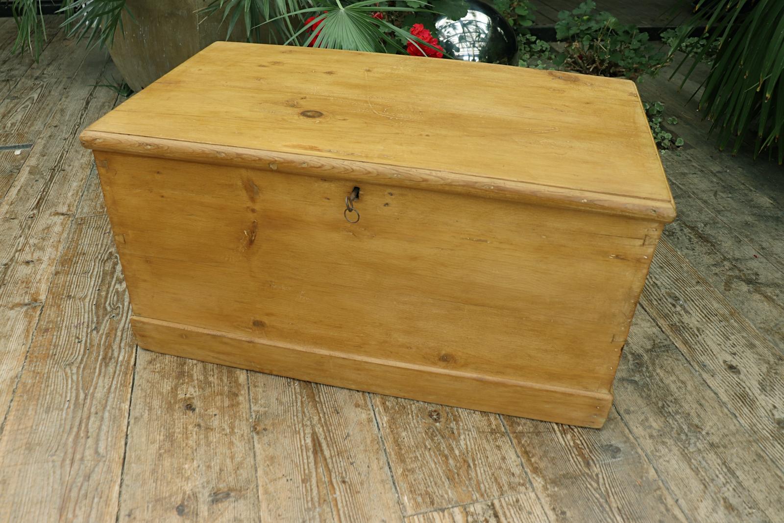 Lovely Old Victorian Pine Blanket Box Chest / Trunk / Coffee Table & Key