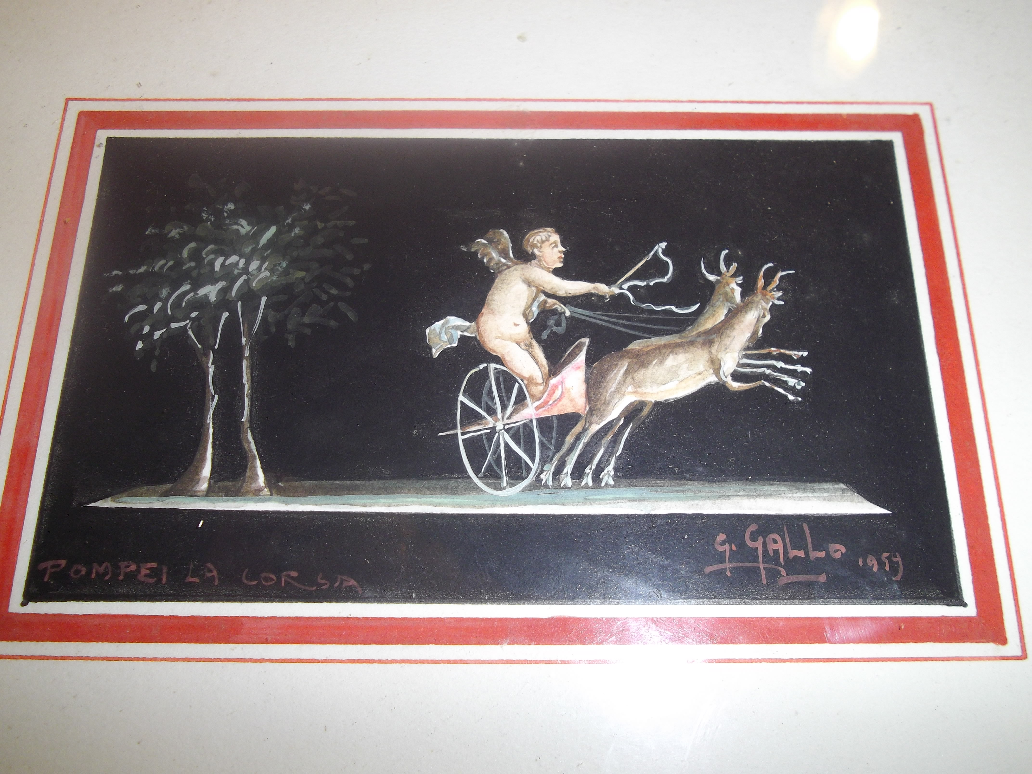 Lovely Original Italian Gouache Painting Souvenir Of Pompeii-Giovanni Gallo-1959