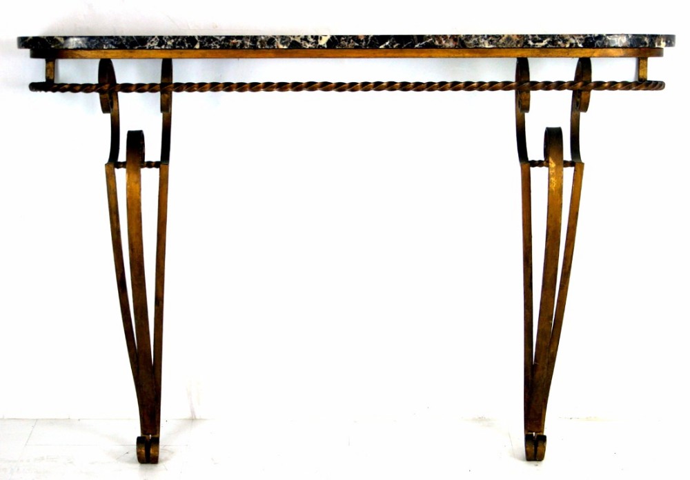 Lovely Original Wrought Iron French Marble Top Console Table c.1920