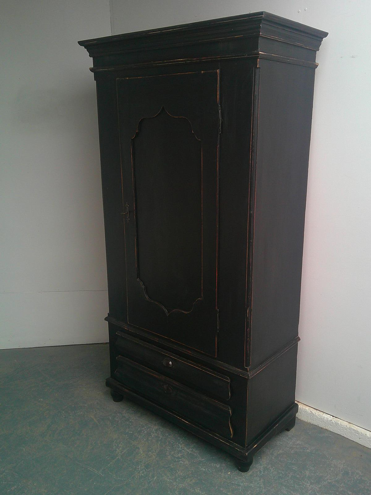 Lovely Painted Black Antique Pine Victorian 1 Piece Hall / Child Wardrobe