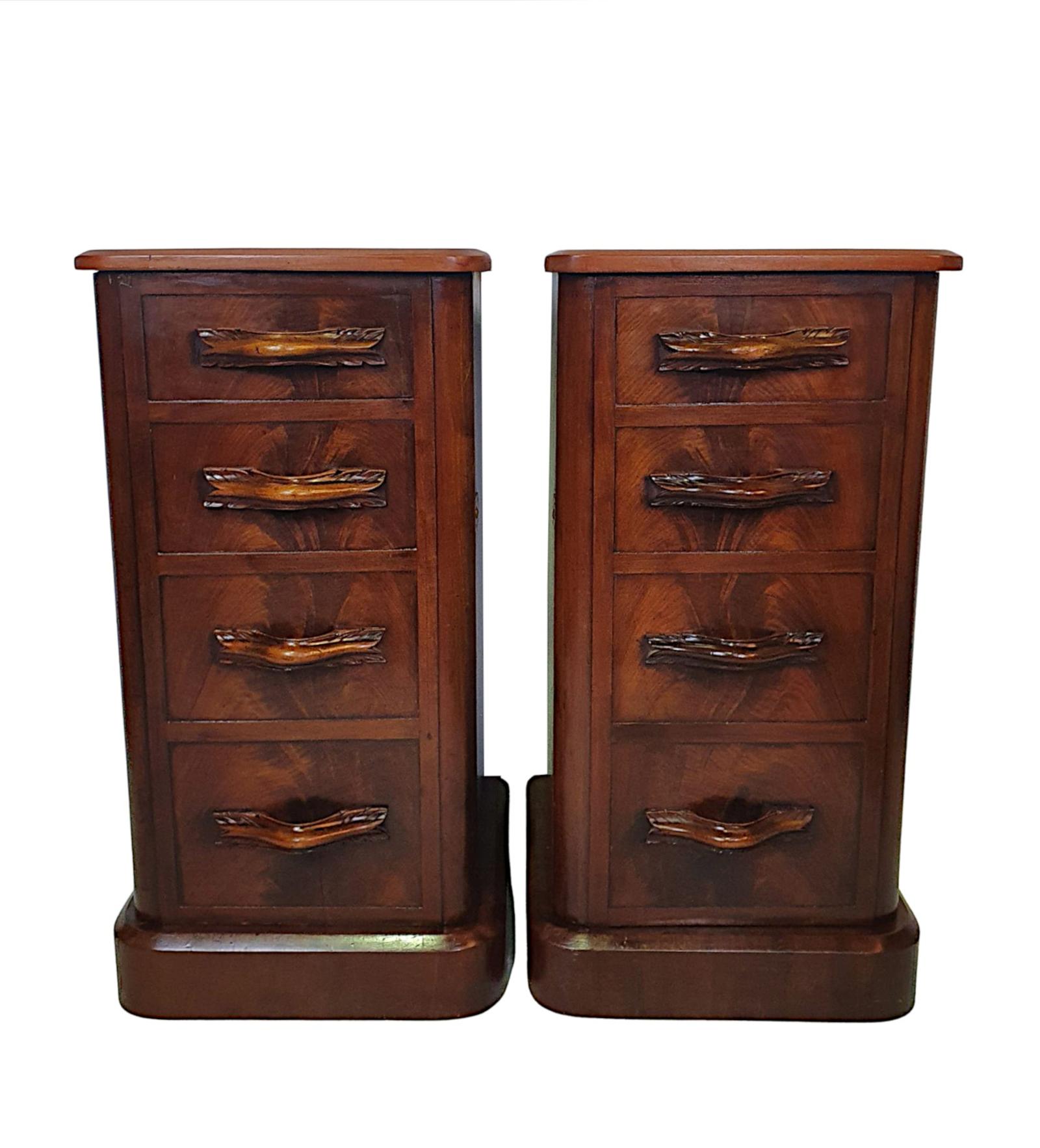 Lovely Pair of 19th Century Flame Mahogany Bedside Cupboards