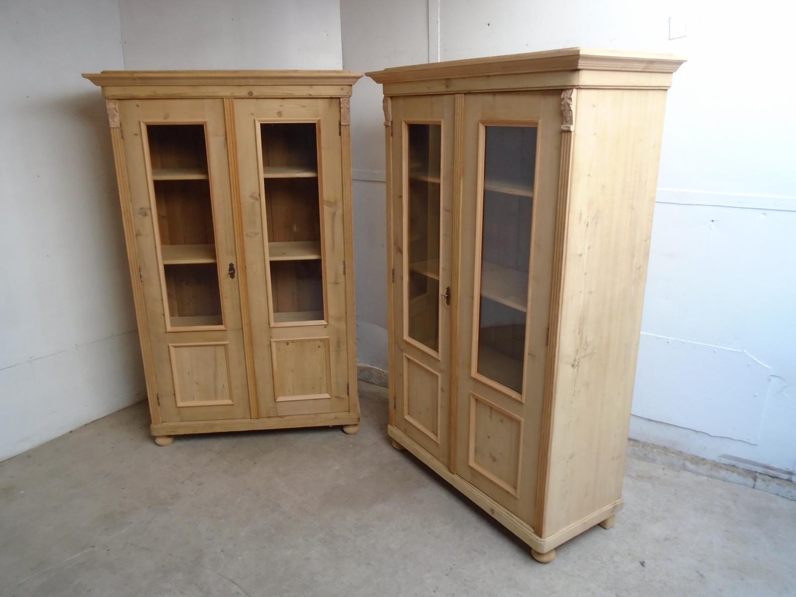 Lovely Pair of 2 Door Antique Pine Glazed Display Cabinets to wax / paint