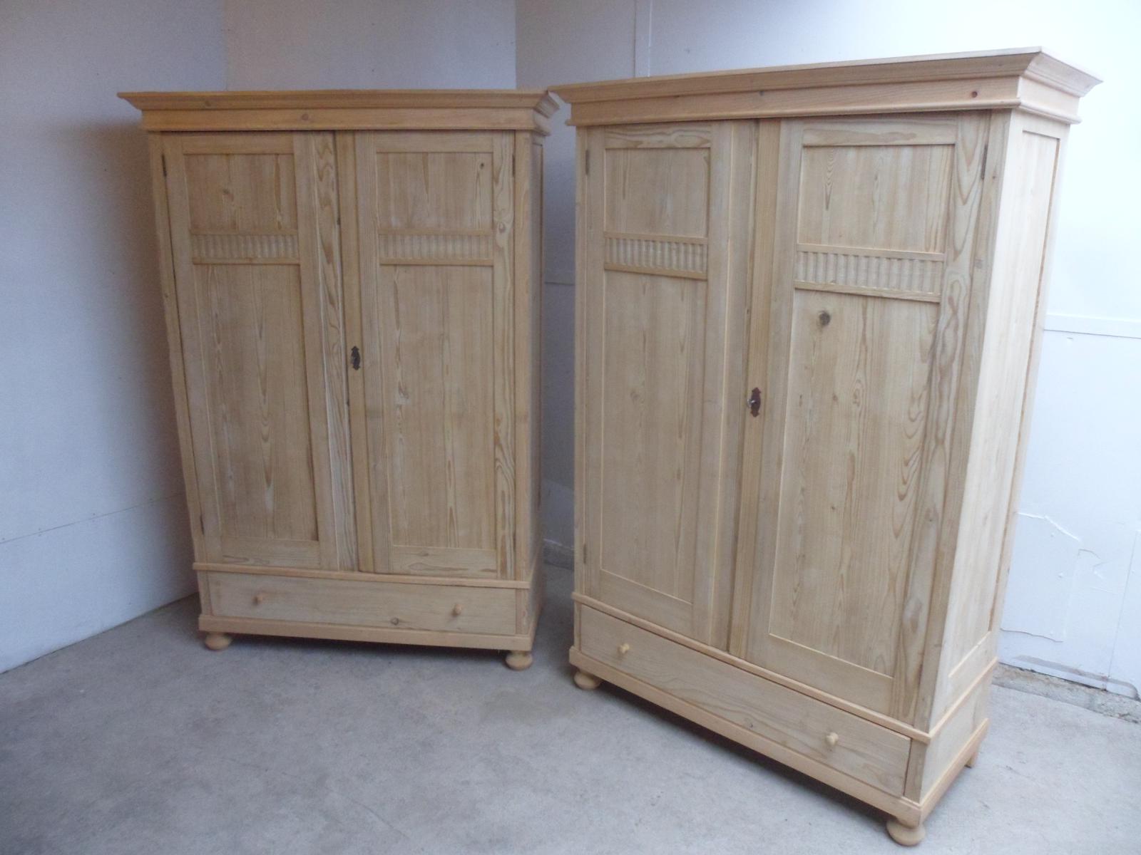 Lovely Pair of 2 Panel Antique Pine Knockdown Wardrobes to wax / paint