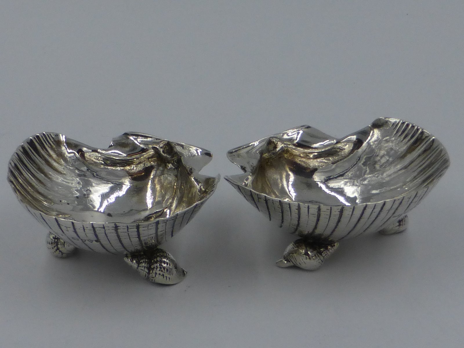 Lovely Pair of Antique Victorian Silver Shell Salts, London 1892