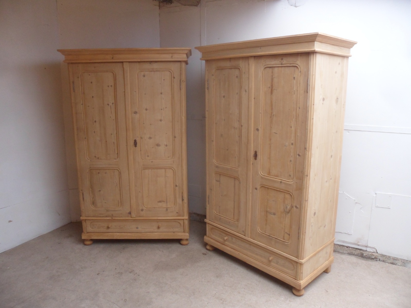 Lovely Pair of Art Deco 1930s Old Pine Knockdown Wardrobes to wax / paint