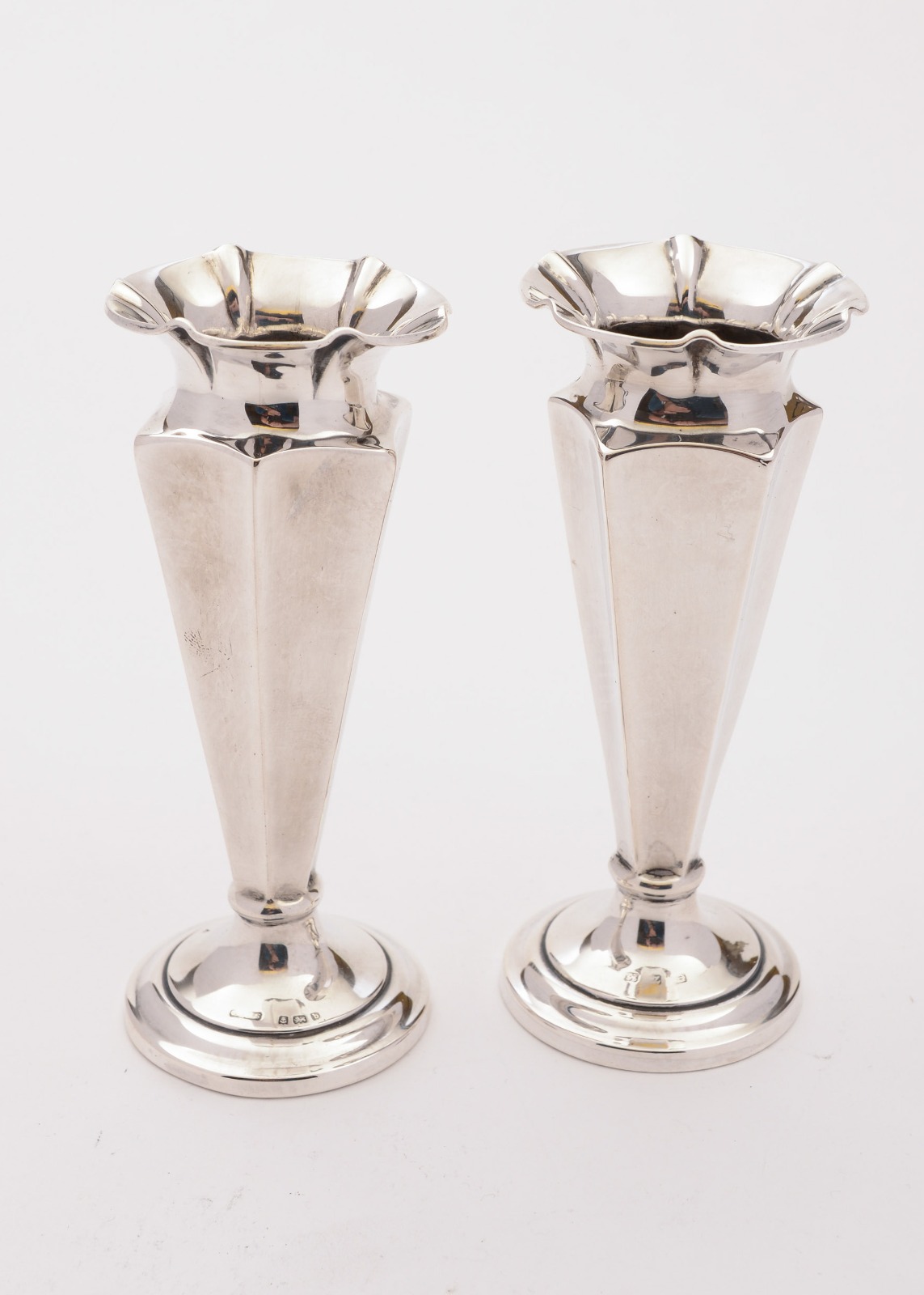Lovely Pair of Edwardian Silver Posey Vases, Birmingham 1901