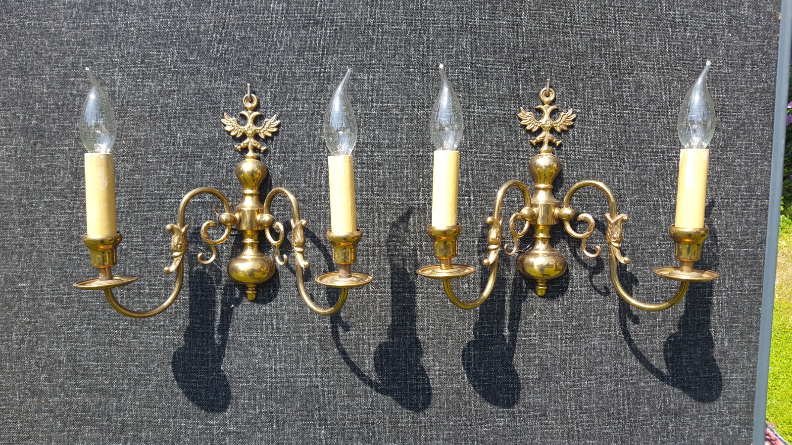 Lovely Pair of Exceptional Vintage Brass Flemish Wall Lights