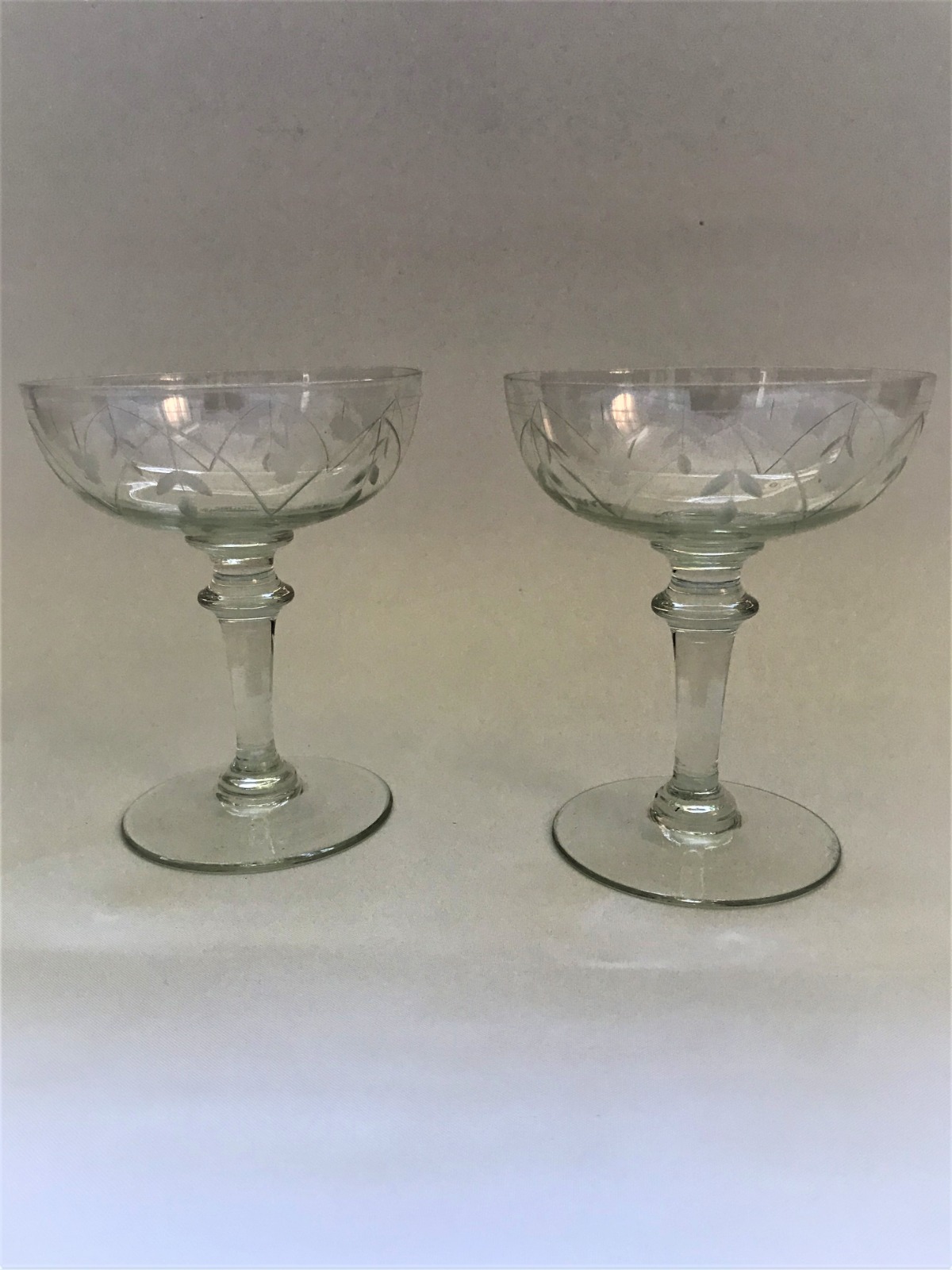 Lovely Pair of French Etched Champagne Bowls (1 of 6)