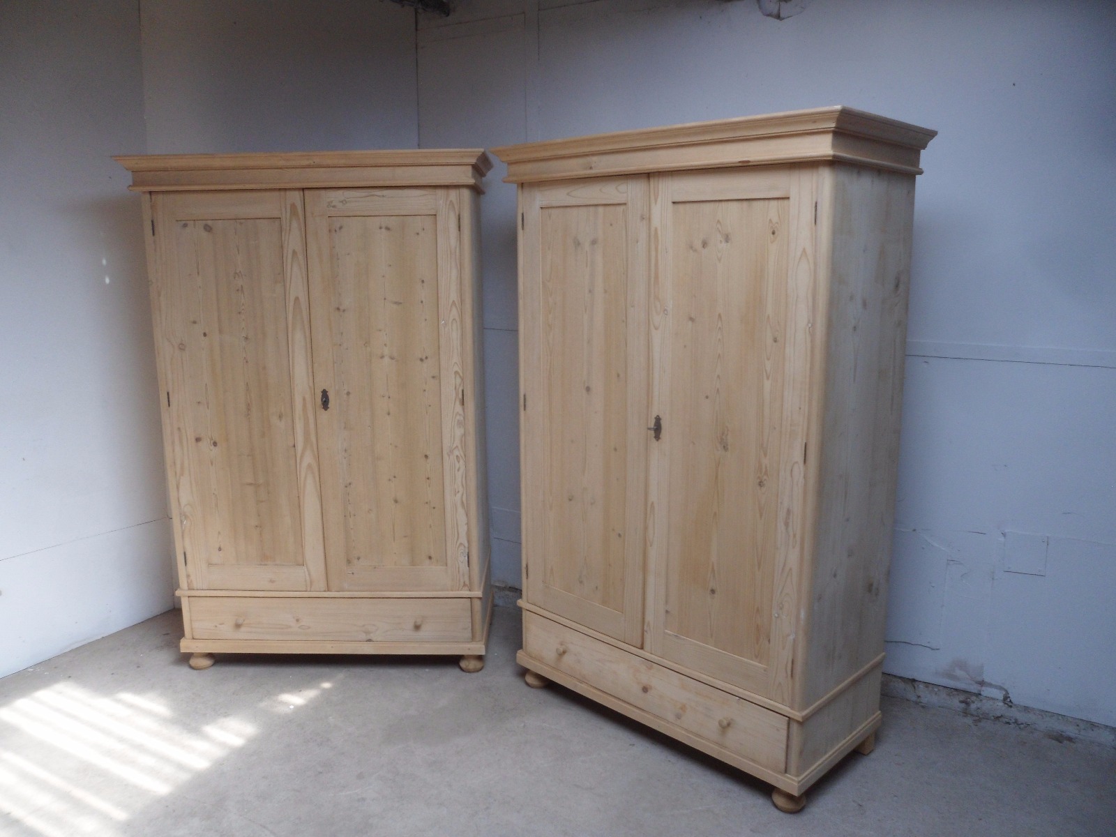 Lovely Pair of Large Old Pine Plain Knockdown Wardrobes to Wax / Paint