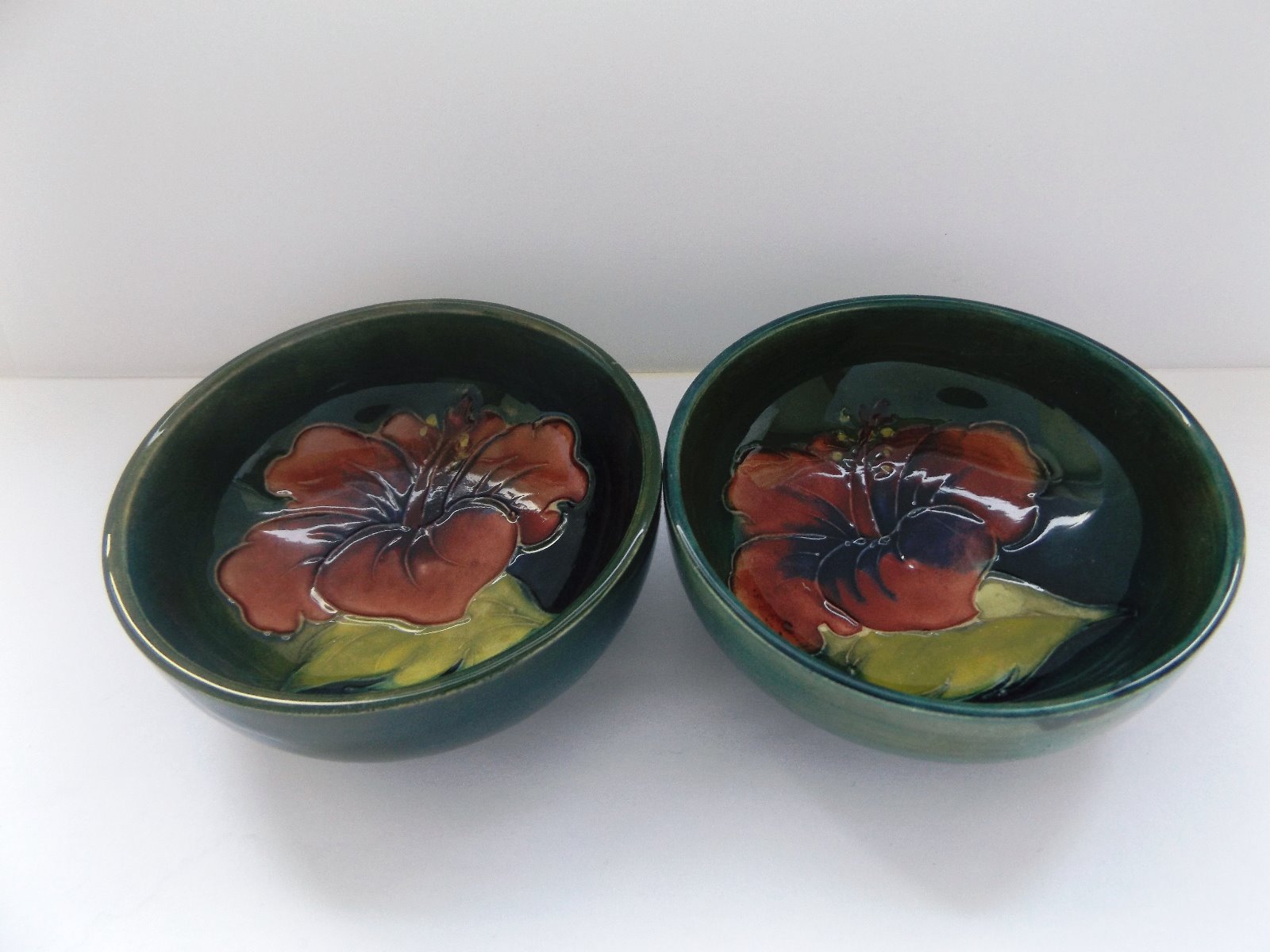 Lovely Pair of Moorcroft Hibiscus Pattern Dishes c.1950