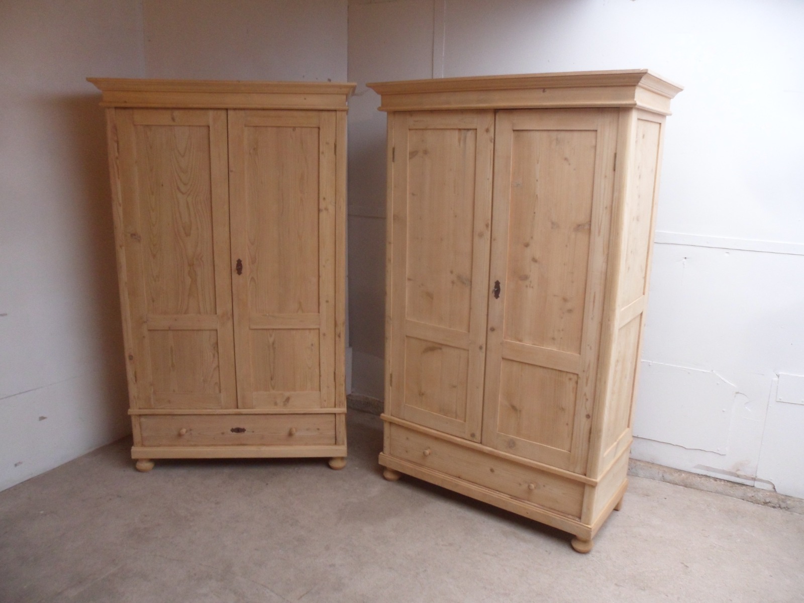 Lovely Pair of Old Pine Knockdown Wardrobes to wax / paint