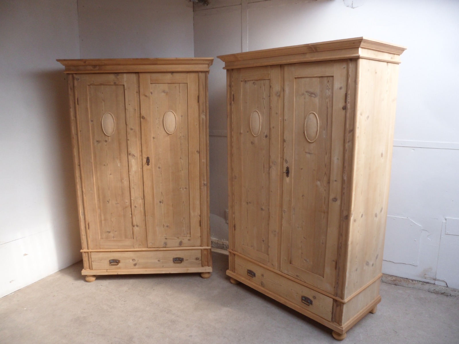Lovely Pair of Old Pine Motif Deep Knockdown Wardrobes to wax / paint