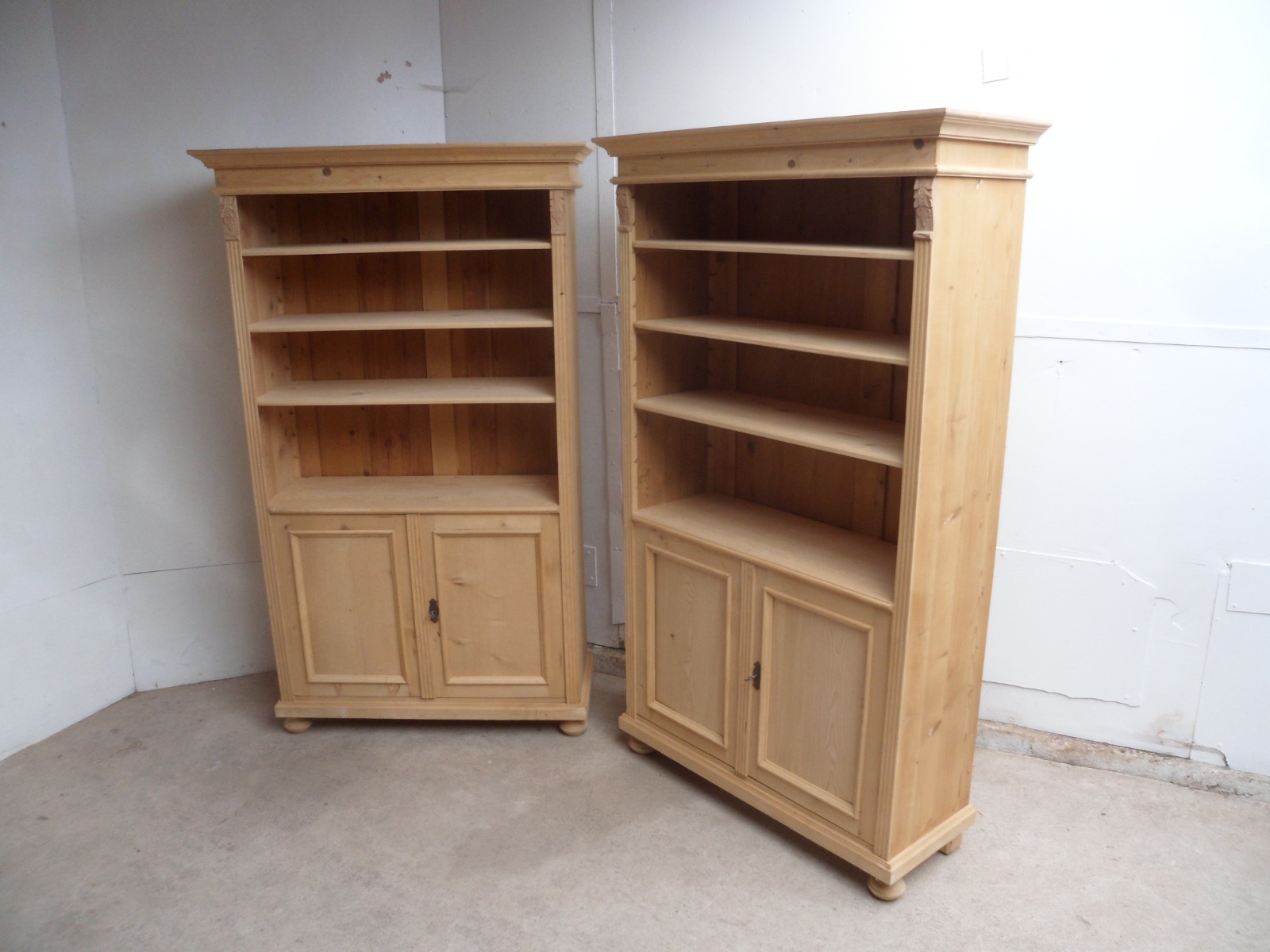 Lovely Pair of Old Pine Open Bookshelves / Office Box Files to wax / paint
