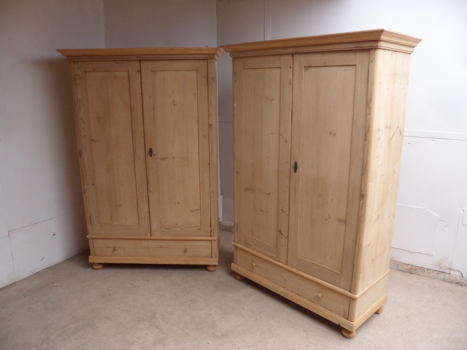 Lovely Pair of Rounded Edge Old Pine Knockdown Wardrobes to wax / paint