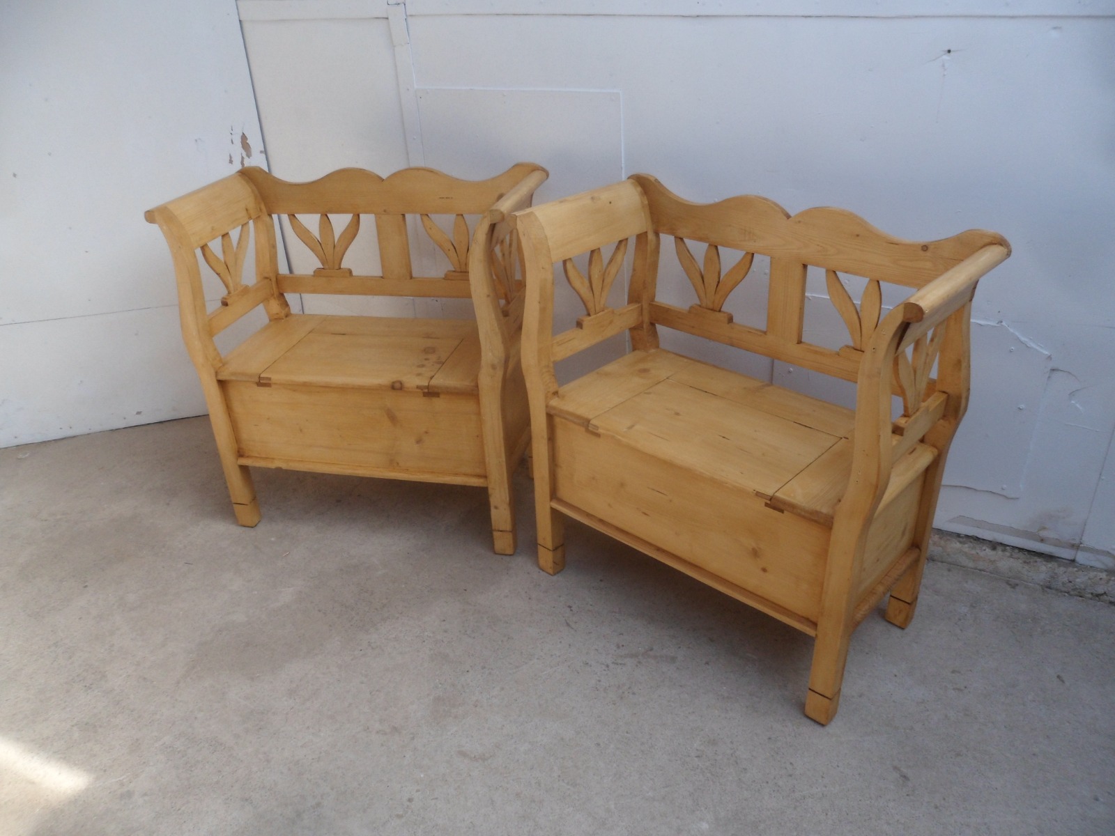 Lovely Pair of Waxed Reclaimed Pine 1/2 Seater Hall/ End of Table Chair / Benches