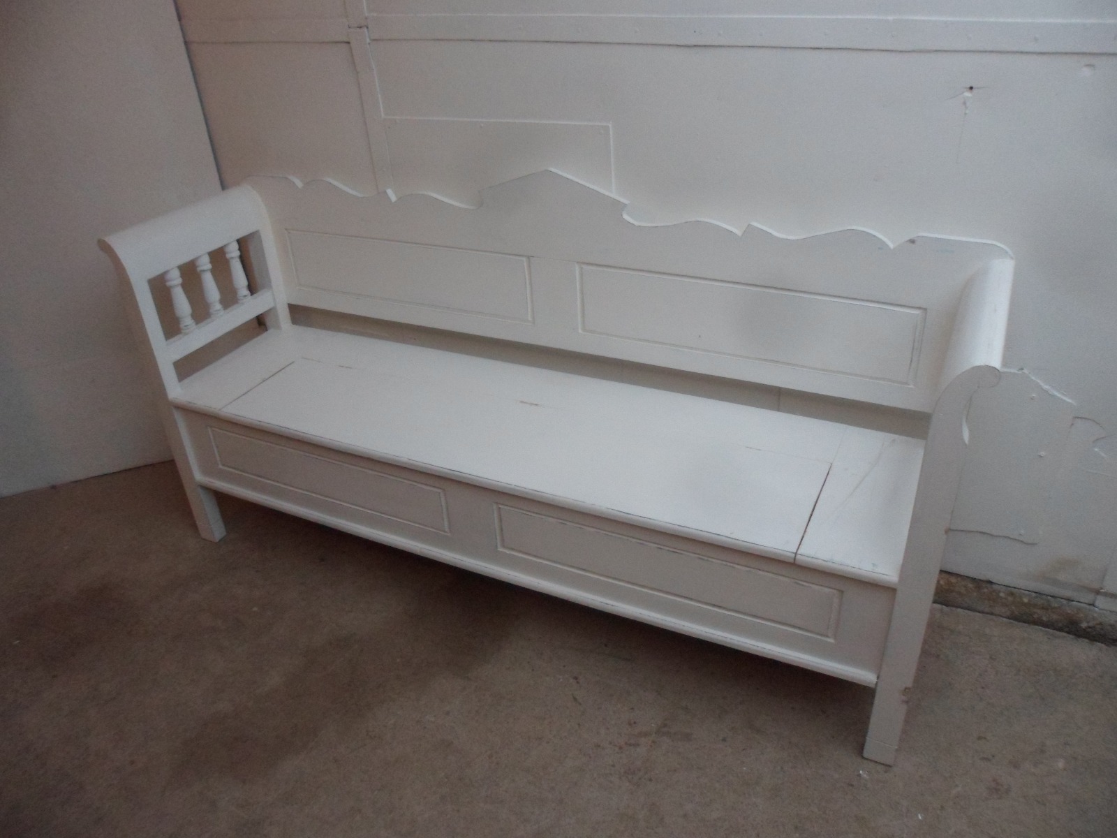 Lovely Panelled Old Pine Painted White Shabby Chic Box Settle / Bench