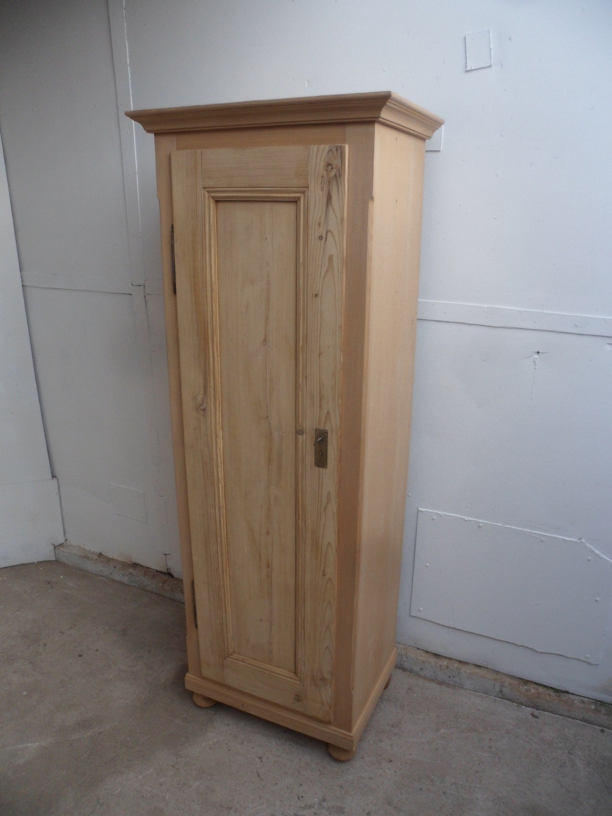 Lovely Pin Hinged Pine Tall Thin 1 Door Storage Cupboard to wax / paint