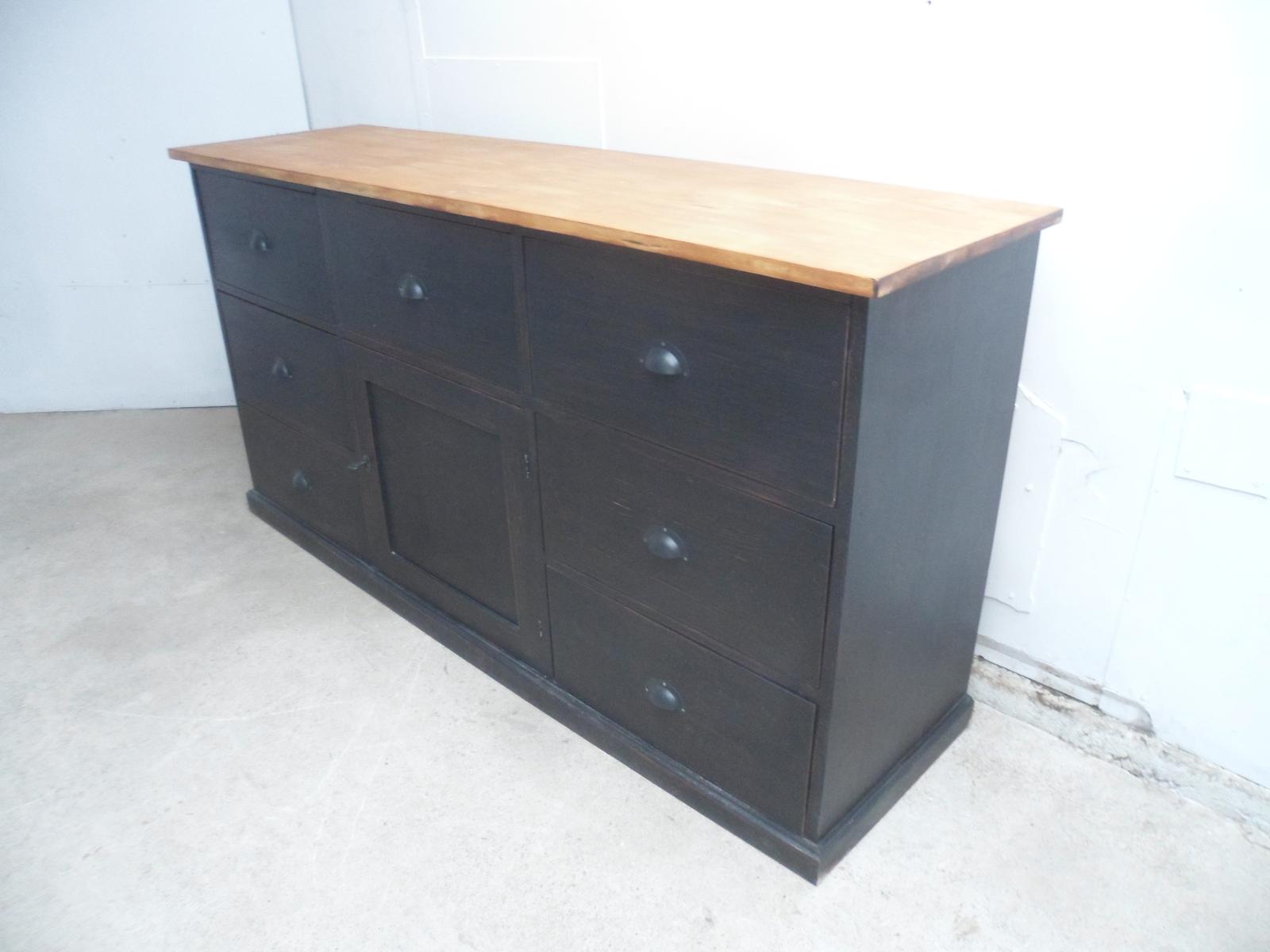 Lovely Pine Painted Black & Waxed 7 Drawer Chest of Drawers / TV Stand