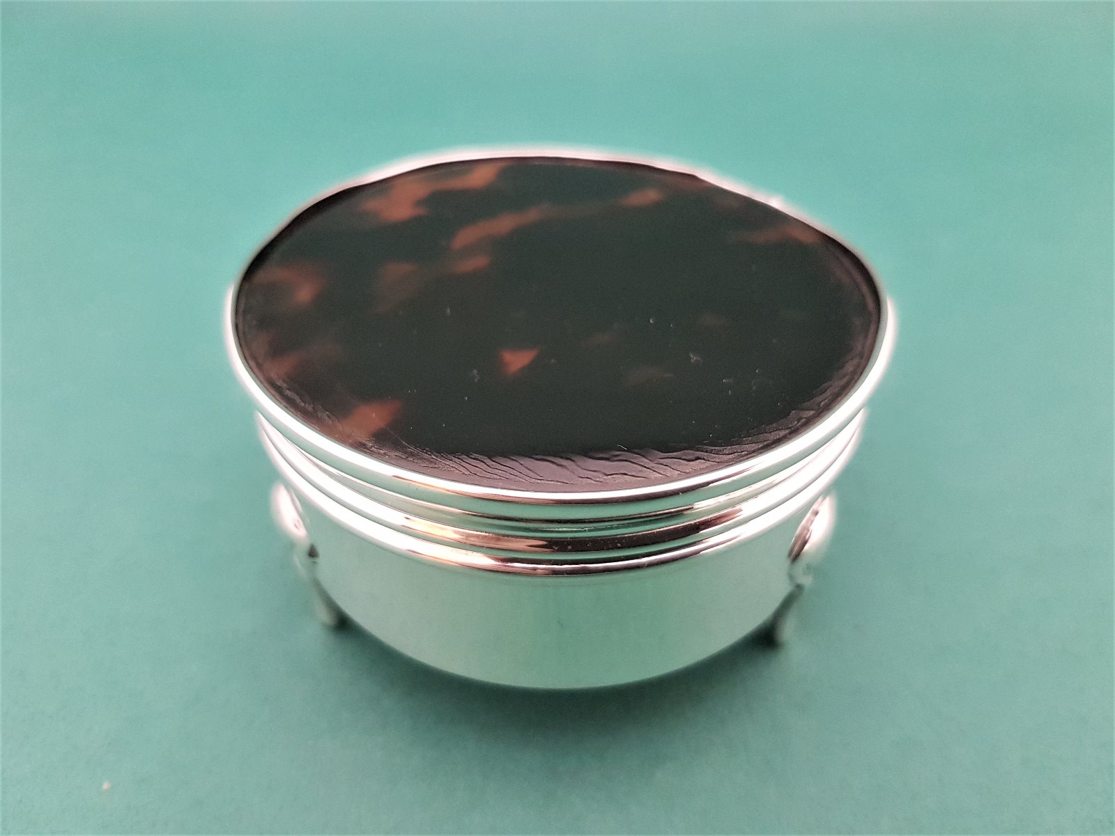 Lovely Plain Round Silver & Tortoiseshell Trinket Box