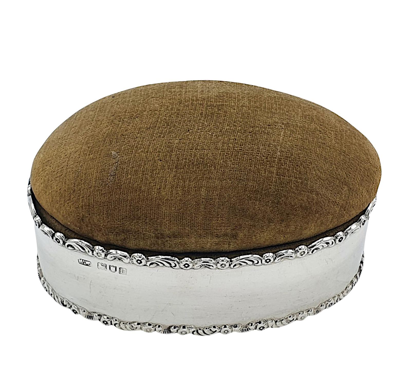 Lovely Quality Edwardian Sterling Silver Box with Pin Cushion Lid