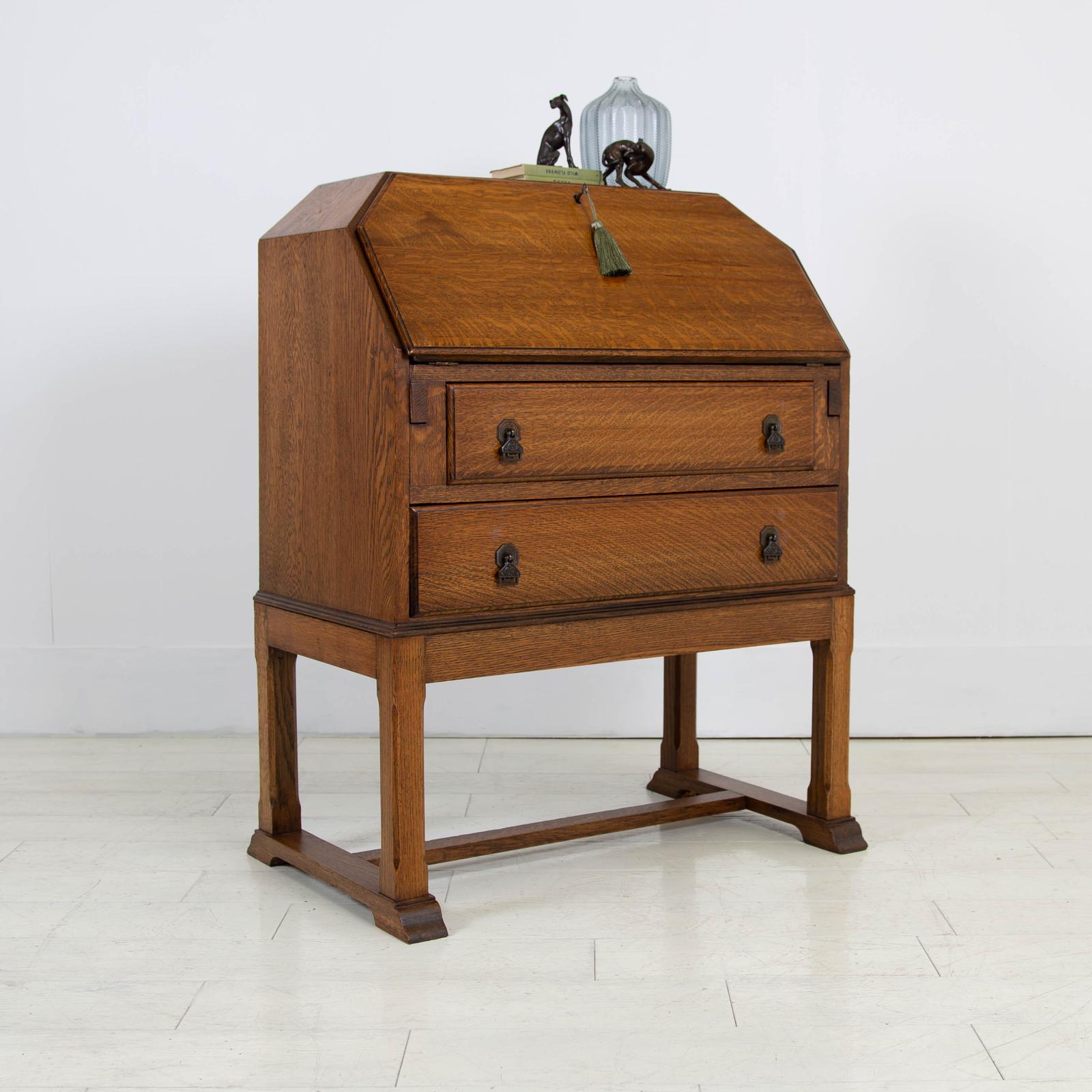 Lovely Quality English Oak 2 Drawer Bureau Desk c.1930 (1 of 13)