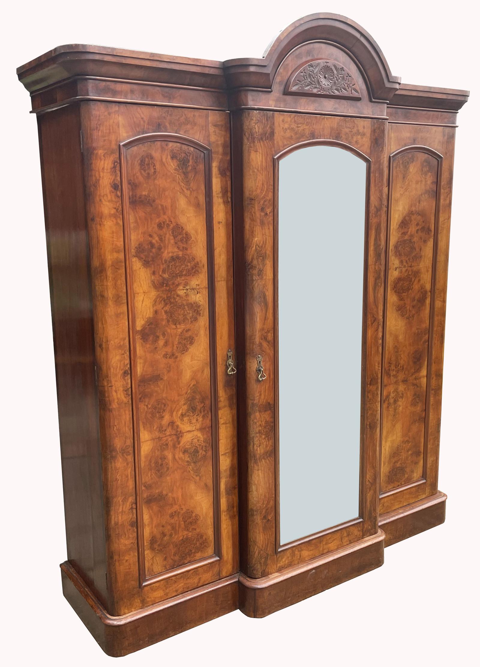 Lovely Quality Victorian Burr Walnut Breakfront Wardrobe