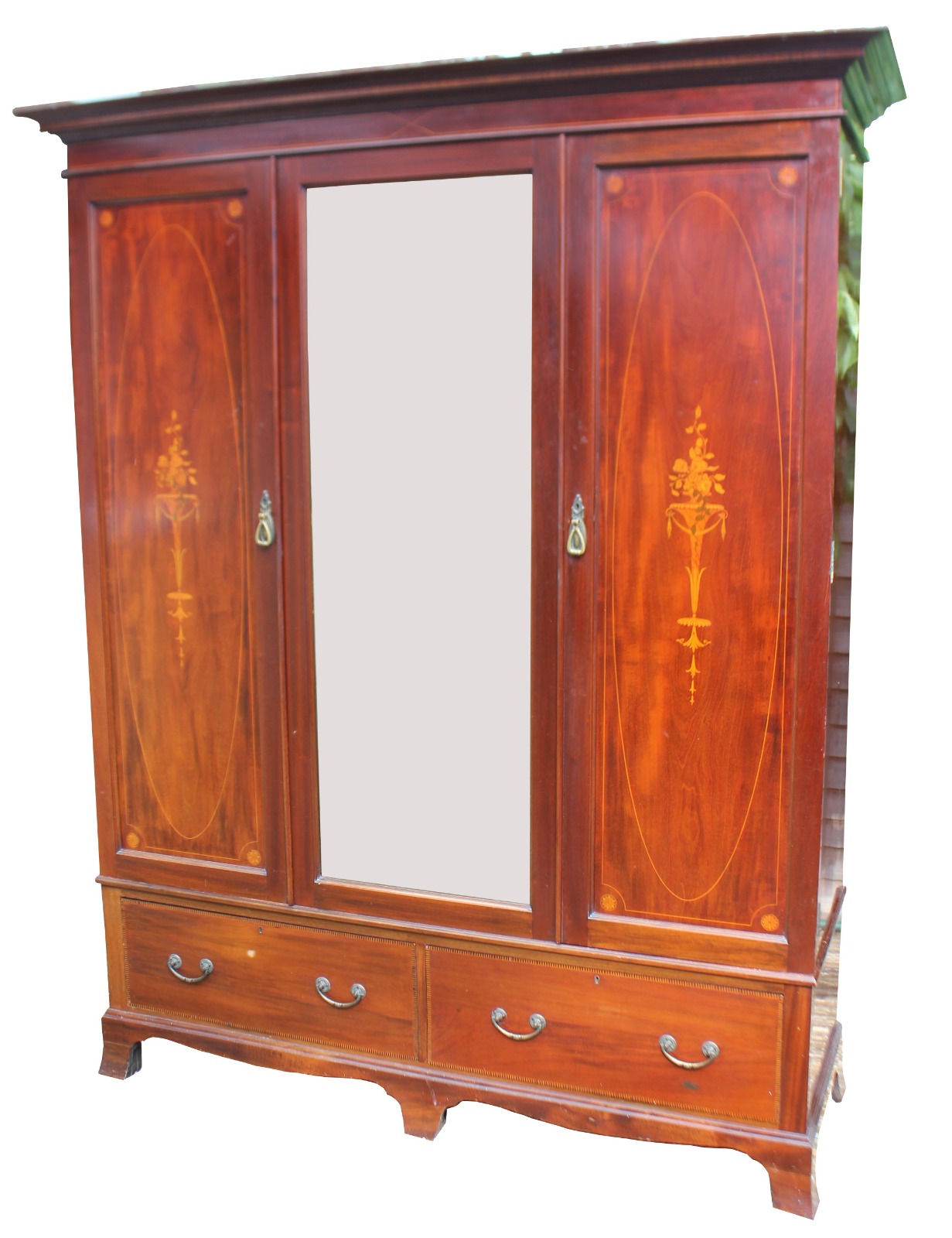 Lovely Quality Victorian Mahogany & Inlaid Two Door Mirrored Wardrobe