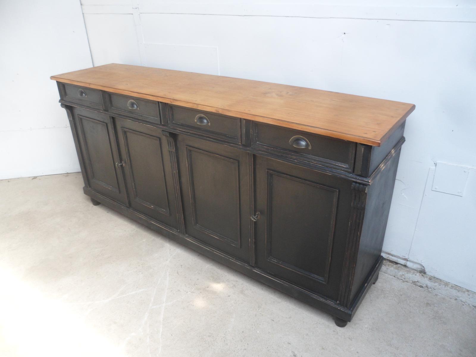 Lovely Reclaimed Pine Painted Black & Waxed 4 Door Dresser Base / TV Stand