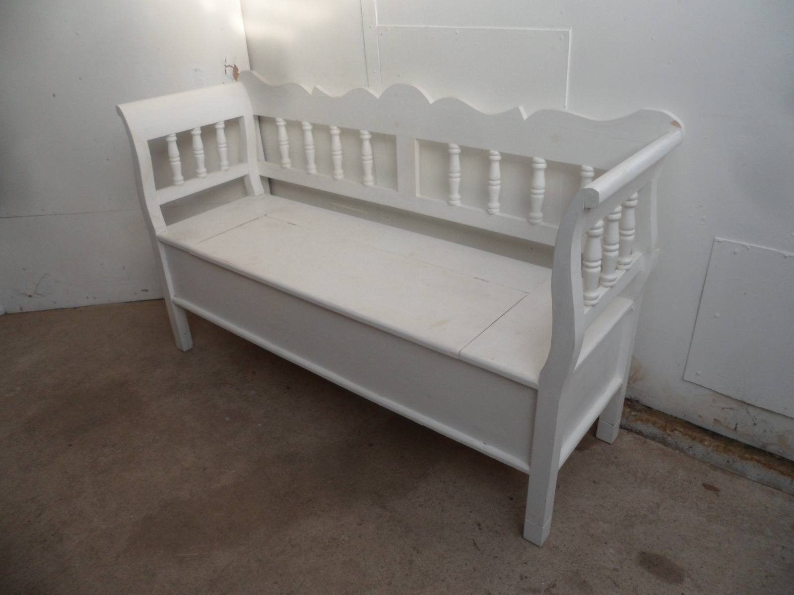 Lovely Reclaimed Pine Painted White 2/3 Seater Box Settle / Bench
