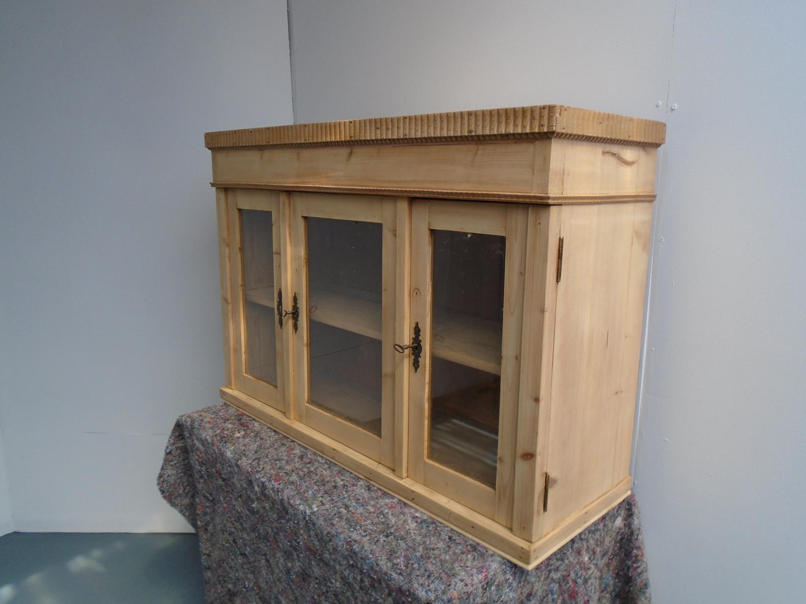 Lovely Reeded 3 Door Pine Wall Hanging Kitchen Cabinet wax / paint