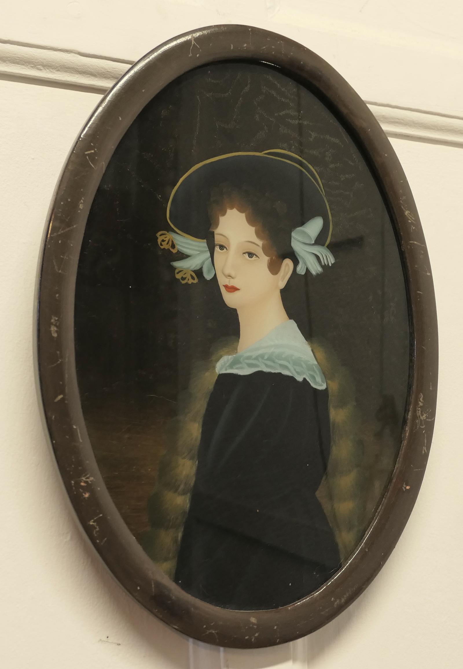 Lovely Reverse Painted Portrait on Glass of Edwardian Beauty