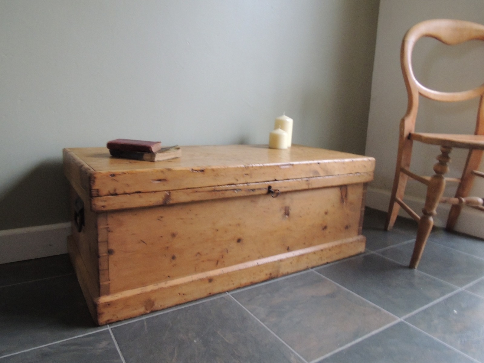 Lovely Rustic Antique Solid Pine Victorian Chest / Blanket Box *with Key*