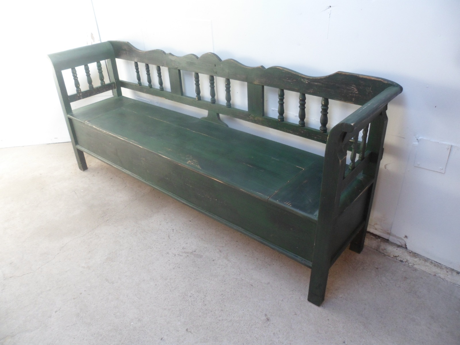 Lovely Shabby Chic Old Pine Emerald Green 3 Seater Box / Settle / Bench