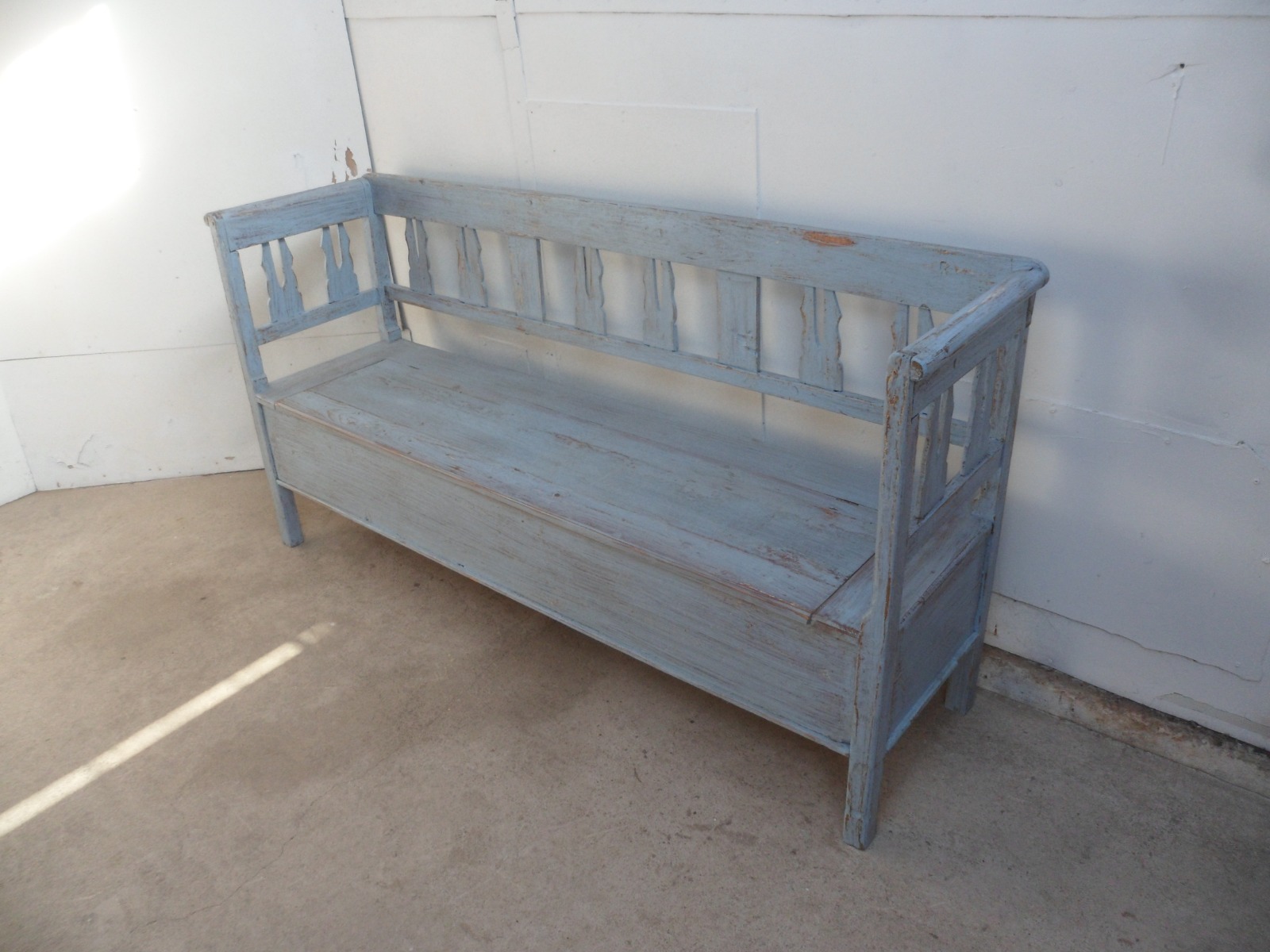 Lovely Shabby Chic Old Pine Sky Blue 3 Seater Box / Settle / Bench