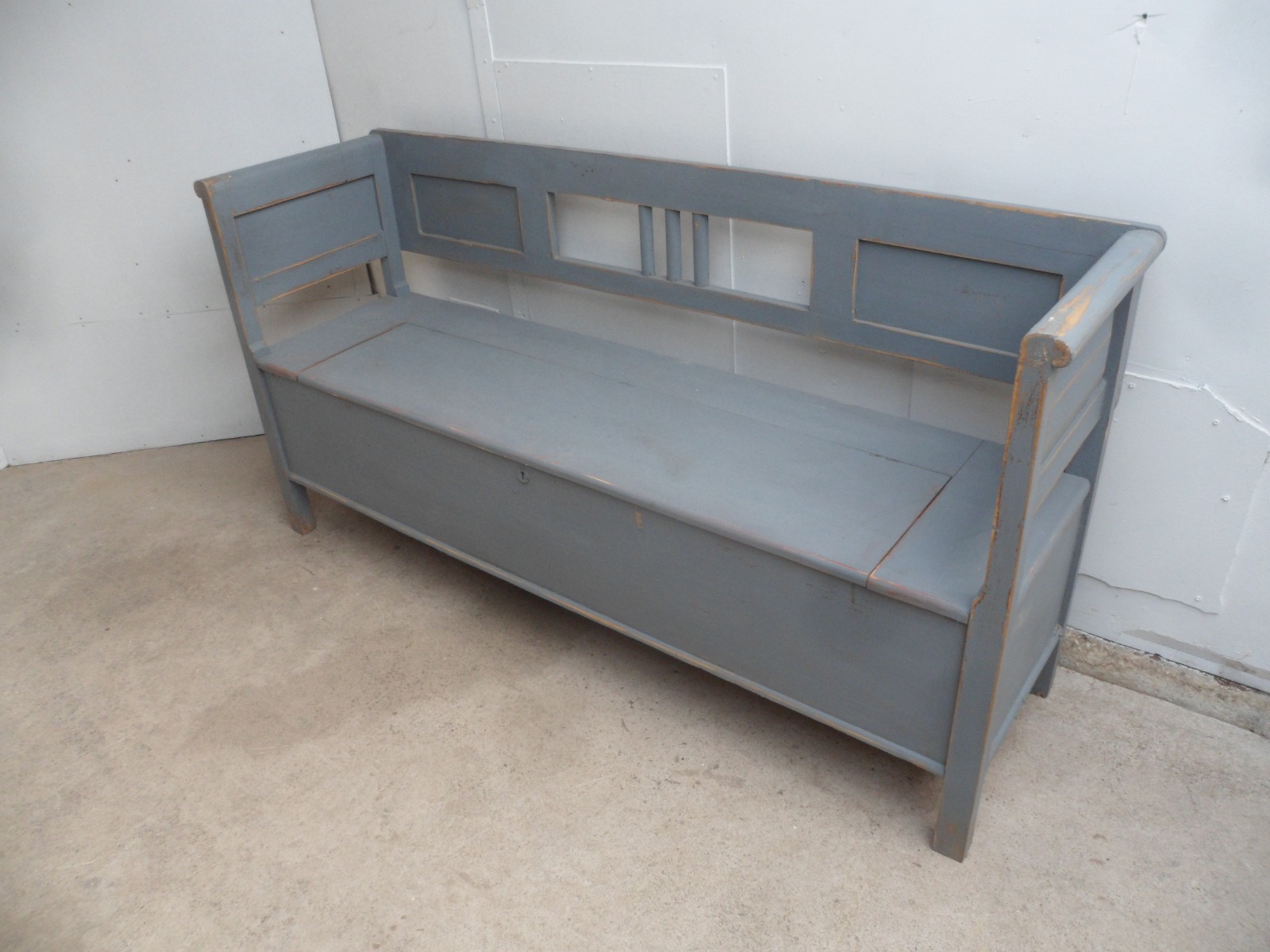 Lovely Simple Victorian Grey Antique Pine Hall / Kitchen Box / Settle / Bench