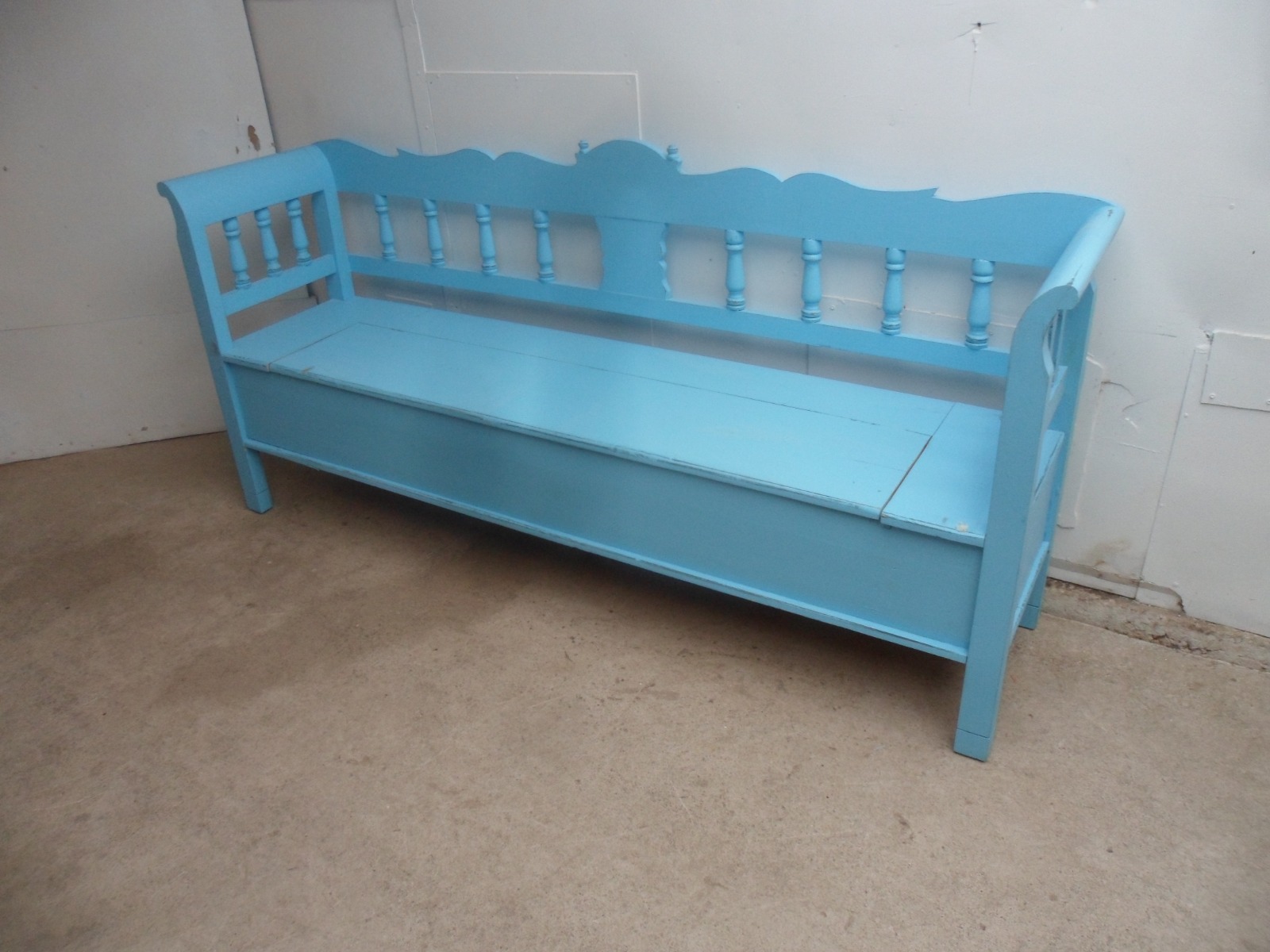 Lovely Sky Blue 2 Metre Pine Shabby Chic 3/4 Seater Box Settle / Bench