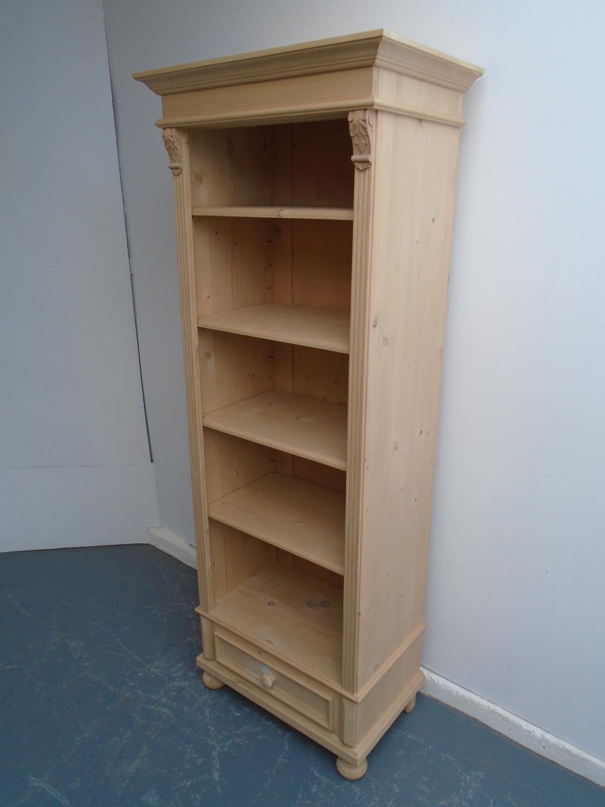 Lovely Small & Narrow Antique Pine Adjustable Office Bookshelf to wax / paint