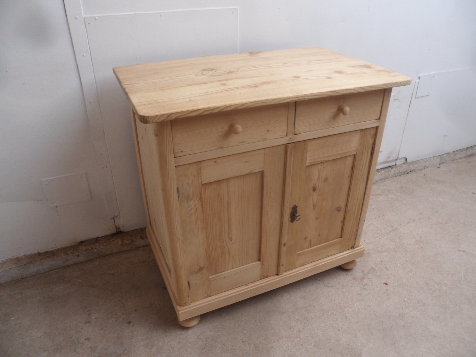 Lovely Small Old Pine 2 Door 2 Drawer Hall Dresser Base to wax / paint