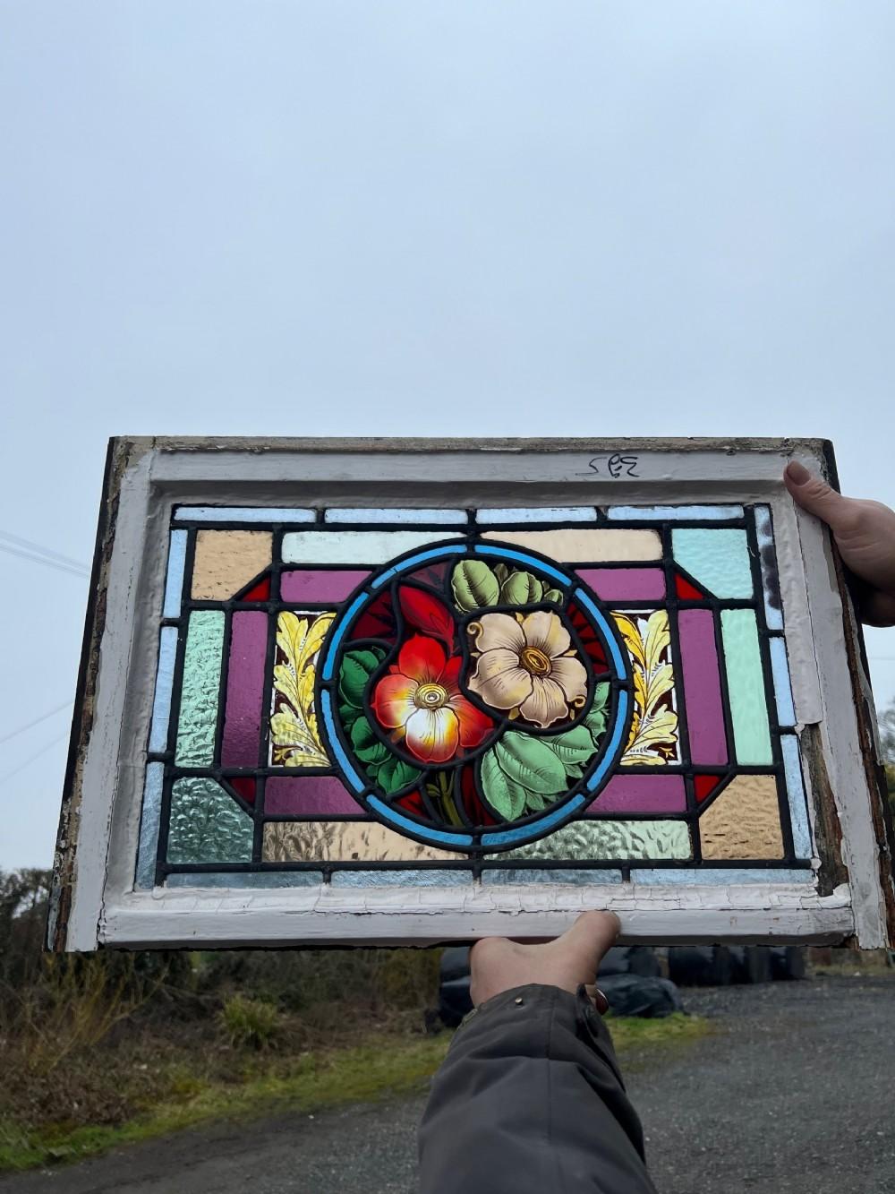 Lovely Stained Glass & Painted Flower Window