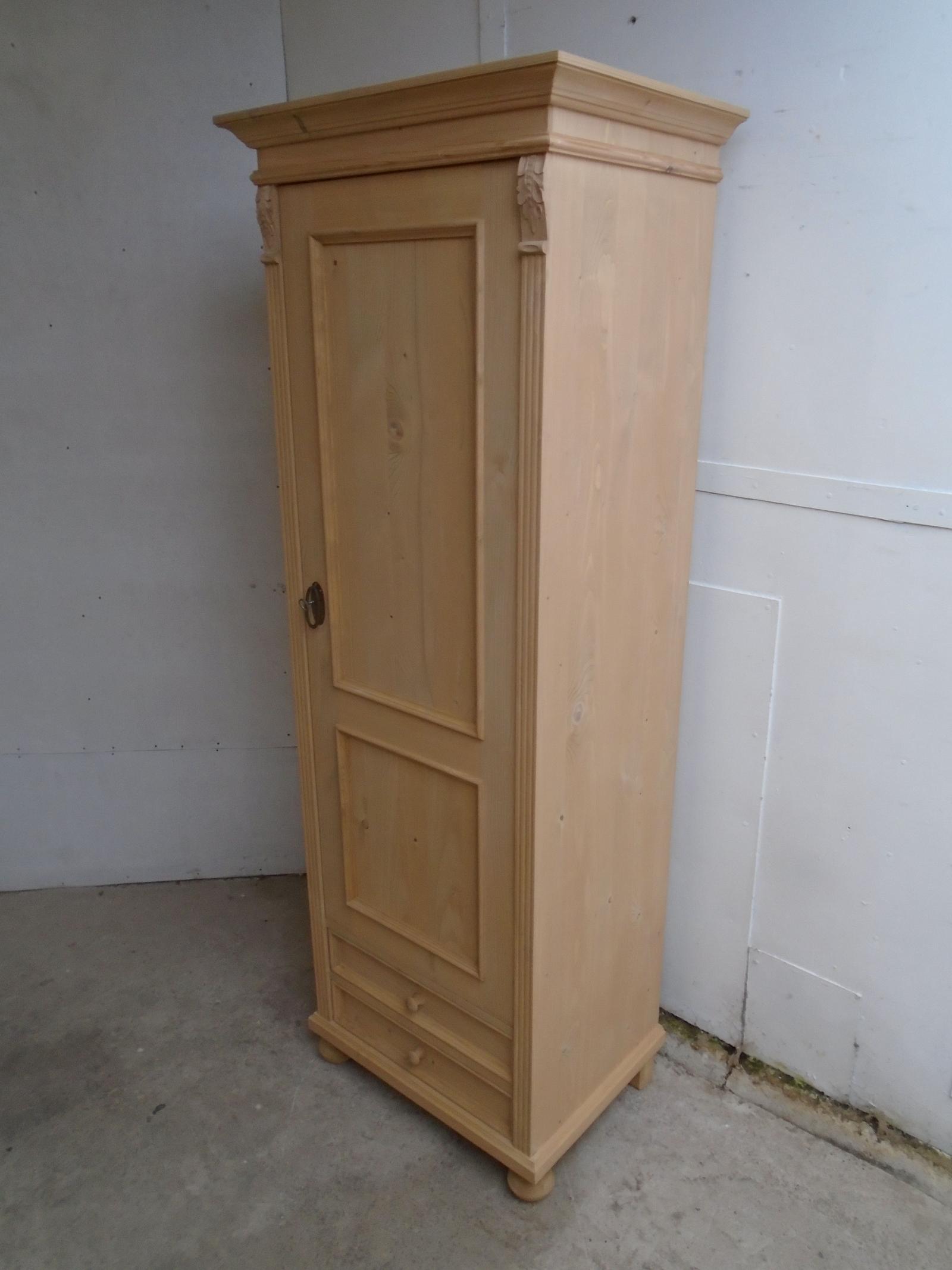 Lovely Tall 1 Door 2 Drawer Antique Pine Child's Wardrobe to wax / paint
