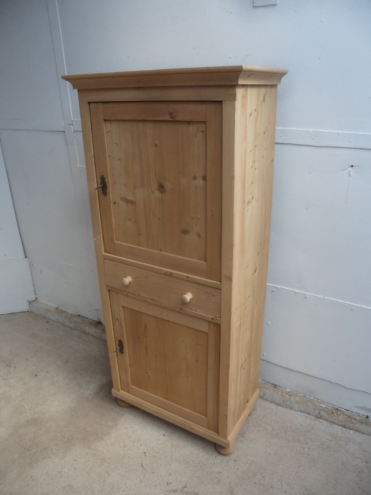 Lovely Tall Thin Antique Pine 2 Door 1 Drawer Storage Cupboard to wax / paint
