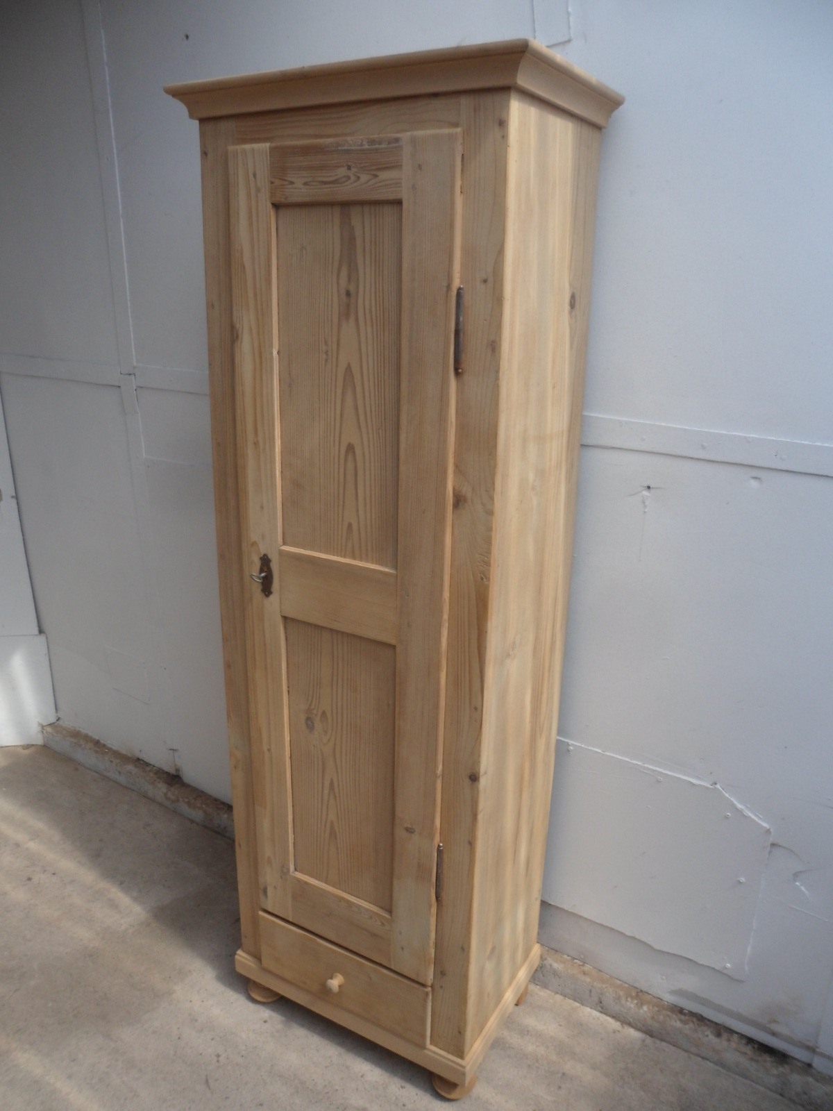 Lovely Tall Thin Old Pine 1 Door Pin Hinge Cupboard to wax / paint
