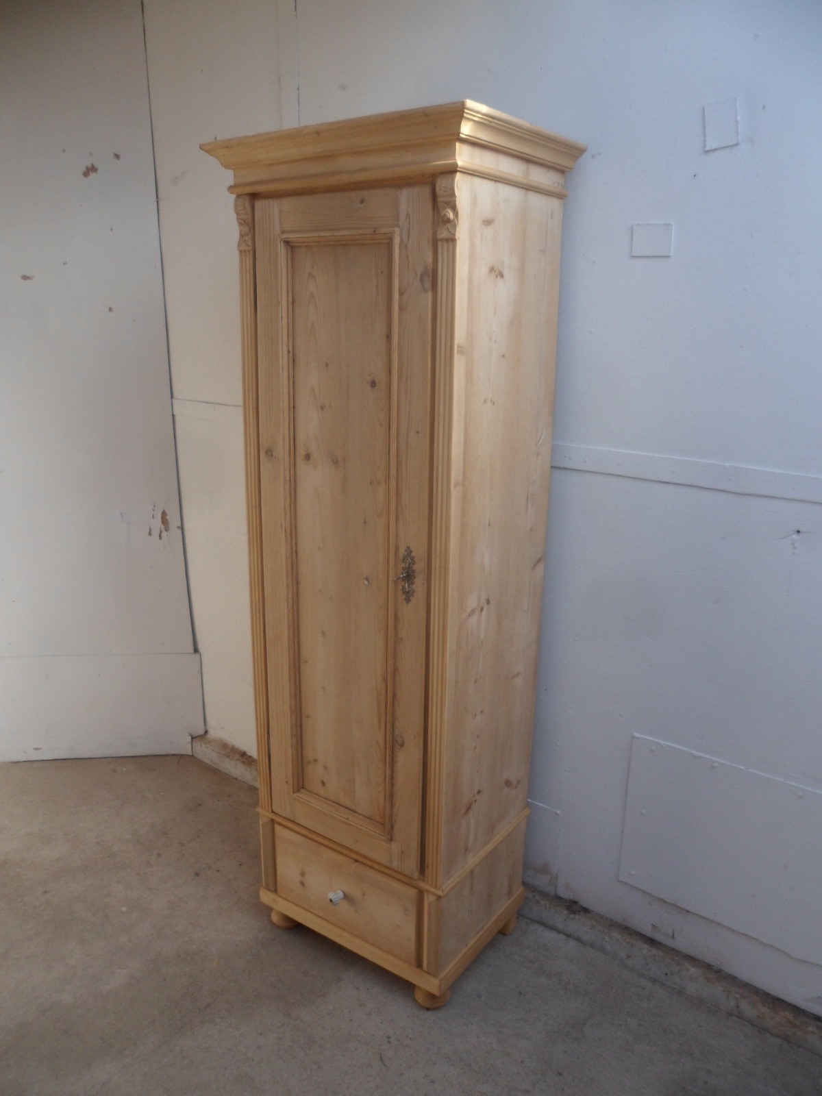 Lovely Thin Old Pine 1 Door Pin Hinged Storage Cupboard to wax / paint