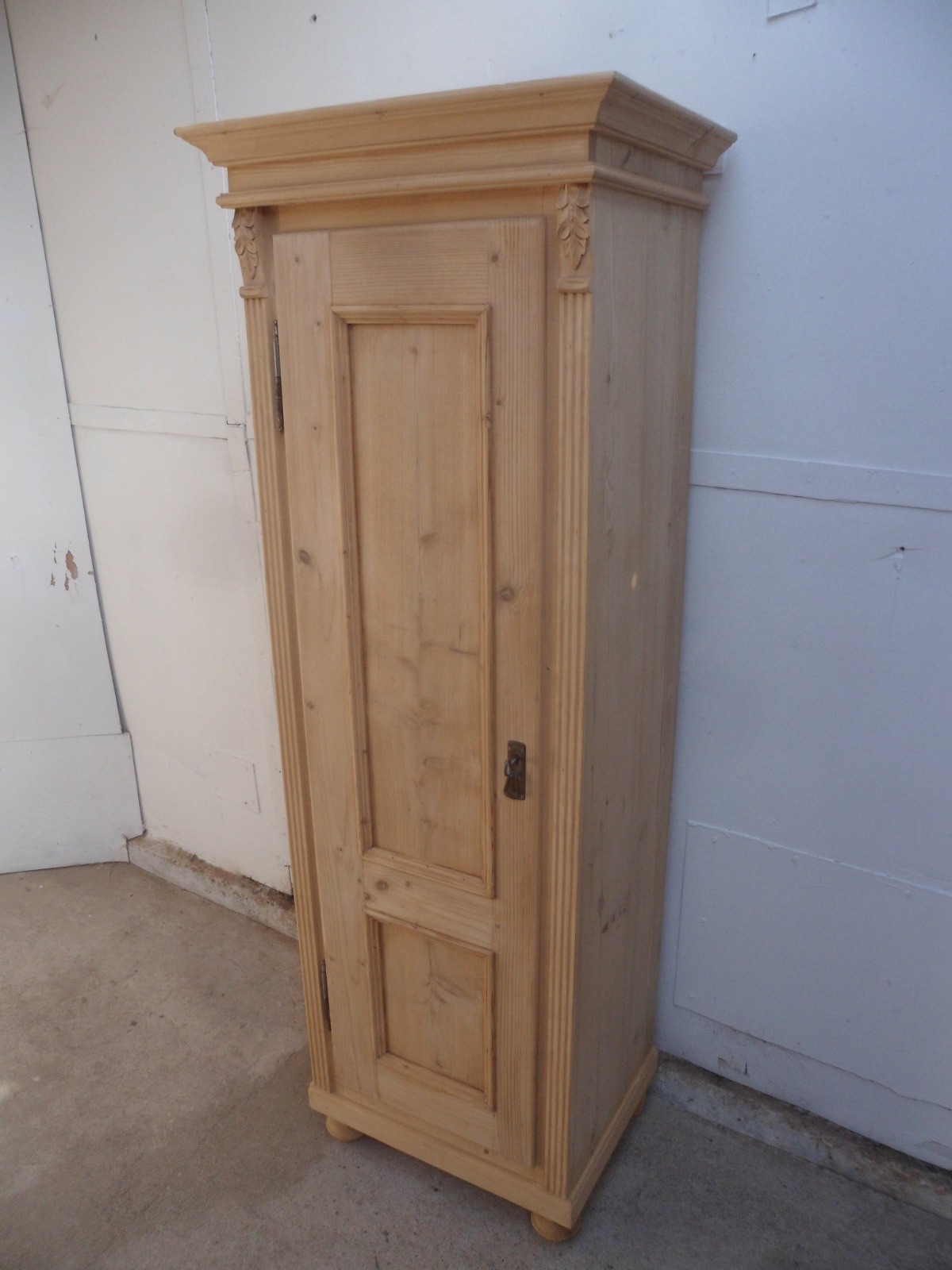 Lovely Thin Old Pine 1 Door Pin Hinged Storage Cupboard to wax / paint