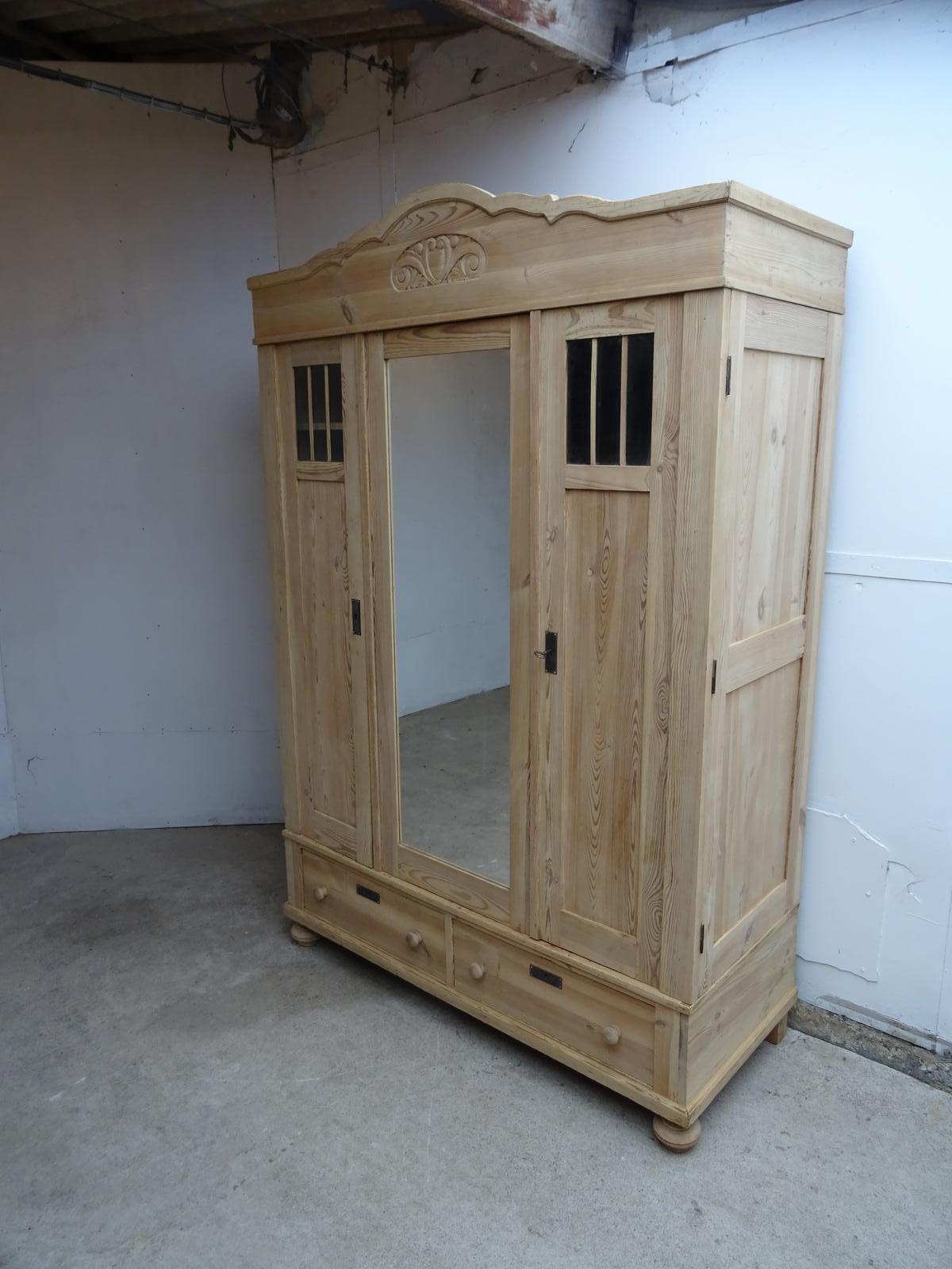 Lovely Triple Mirrored Antique Pine Knockdown Wardrobe to wax / paint