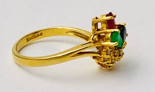 Lovely Tutti Frutti Ruby Sapphire Emerald Diamond 18ct Gold Cluster Ring
