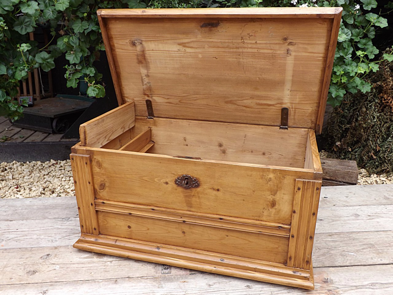 Lovely! Very Old Antique Victorian Pine Blanket Box & Key! Chest / Trunk / Table