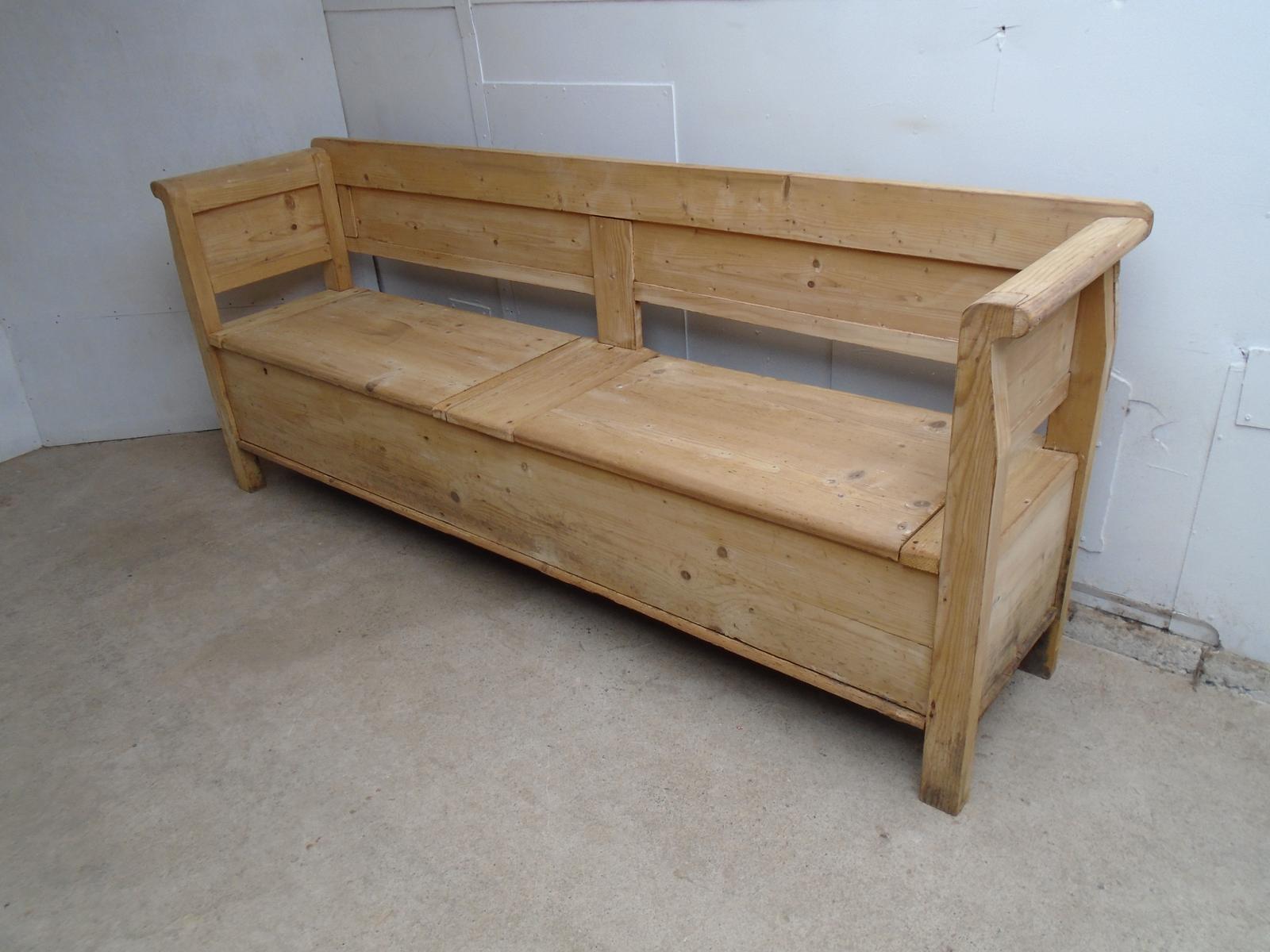 Lovely Victorian Antique Pine 2 Lid Box Settle / Bench to wax / paint