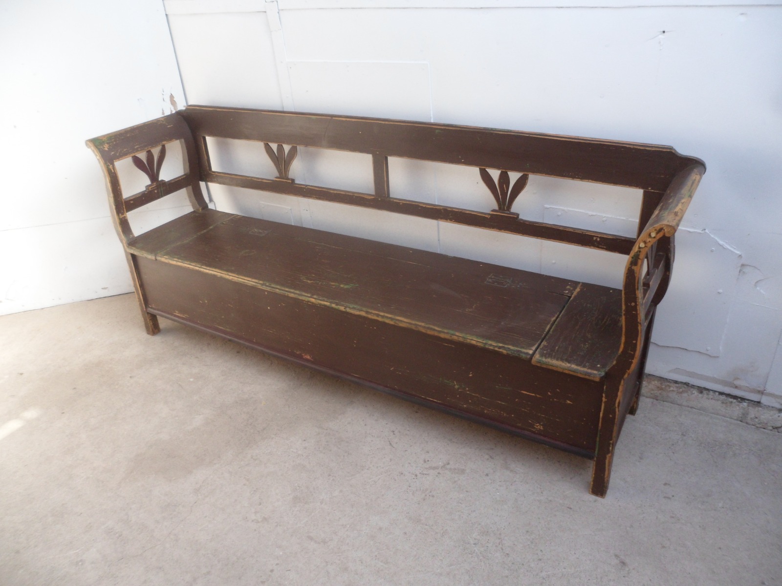 Lovely Victorian Antique Pine Originally Painted Brown / Green Box / Settle / Bench