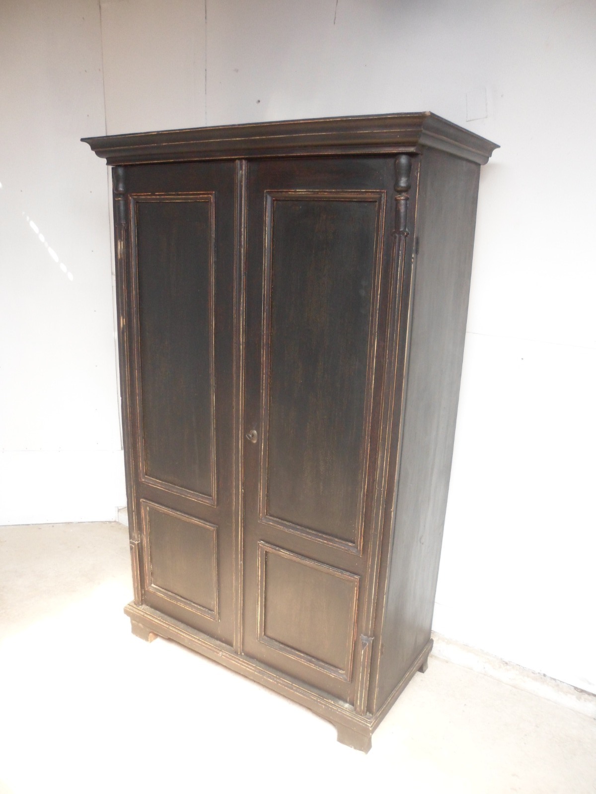 Lovely Victorian Antique Pine Painted Black 1 Piece Child's / Hall Wardrobe